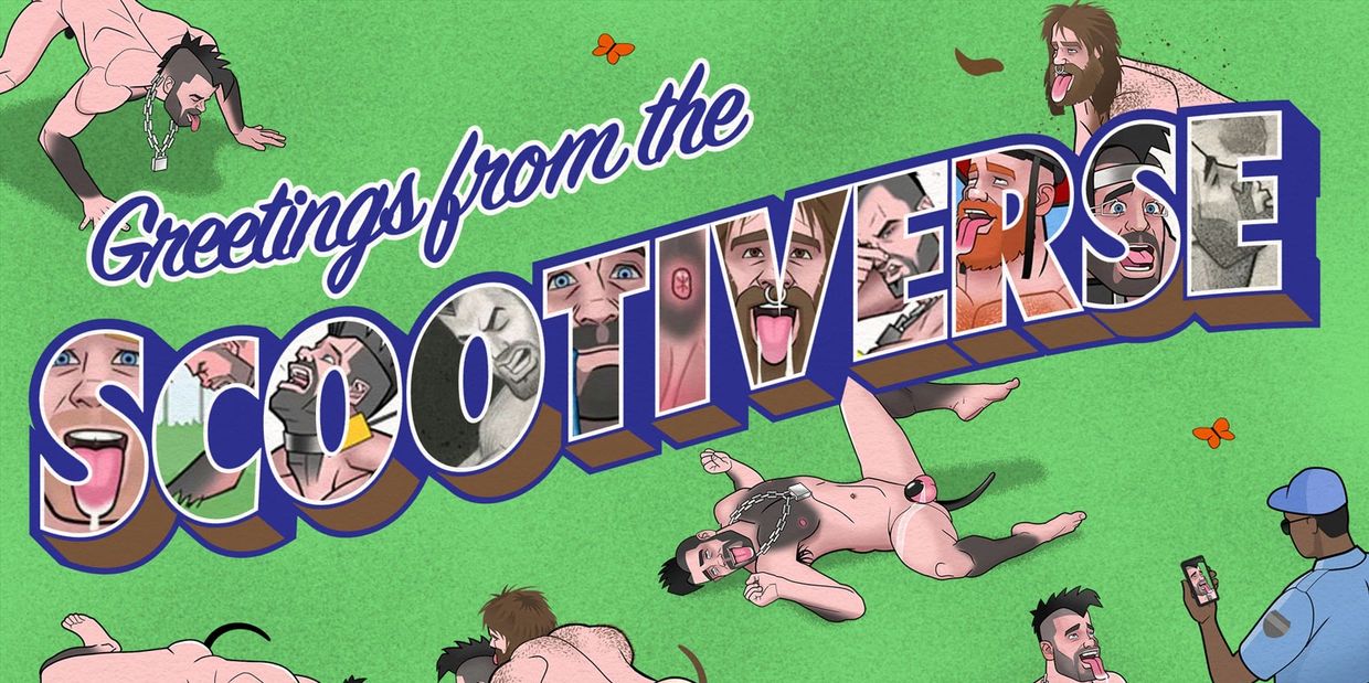 I’ve been making images and animations of my sweet dogboy Scoot for over twenty years now, long before pup-play became “au courant”. Sure, I’ve put him on the shelf for long periods of time, but whenever I blow the dust off of him, he’s ready to play. Over the last year, I’ve done a lot of world building for him, so he has more K9 companions to play with at the dog run.